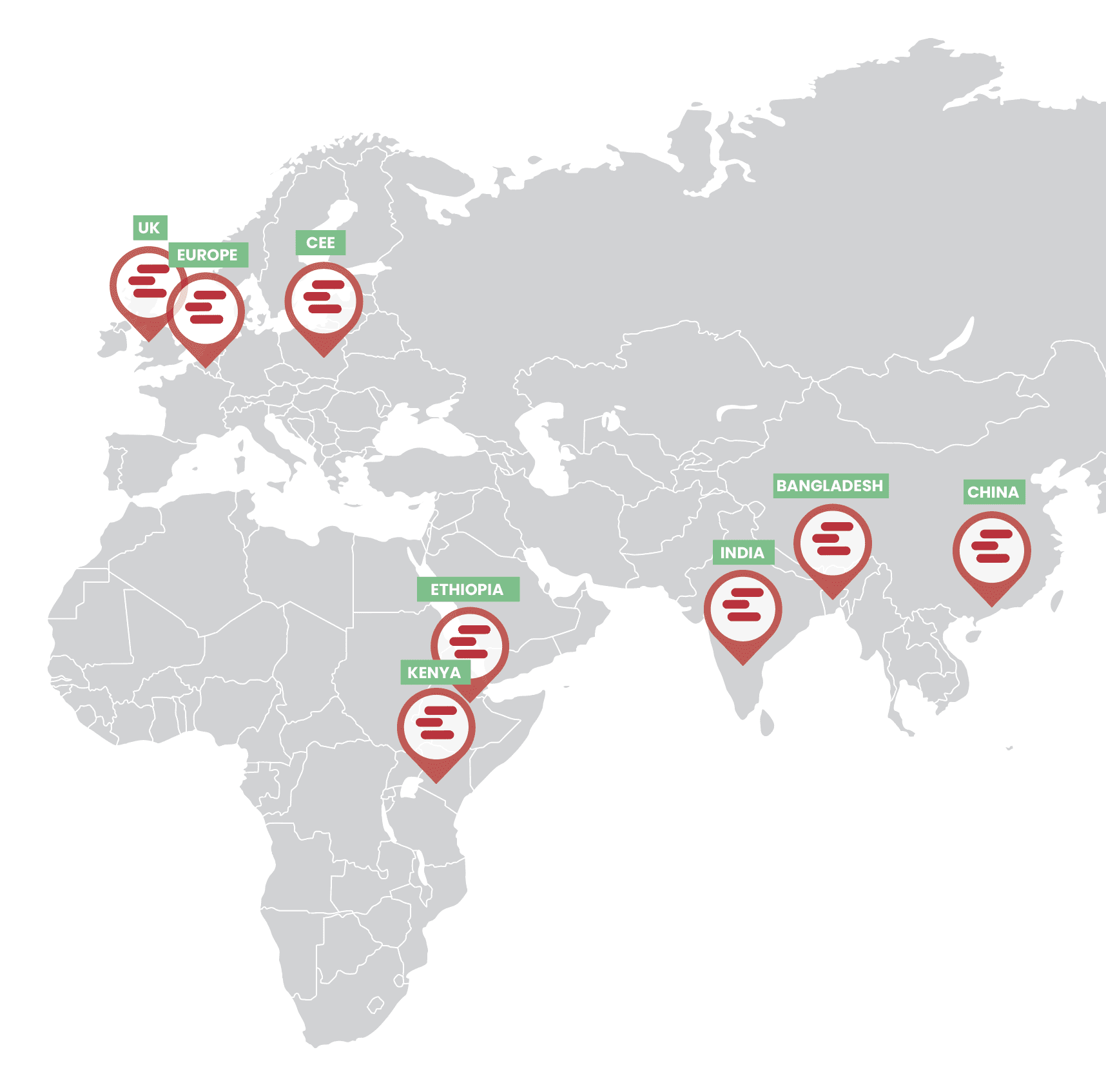 Our offices in China, Bangladesh, India and Ethiopia make sure to follow up all our orders and act as a sourcing and trading hot spot to give us fll control over our supply chain.